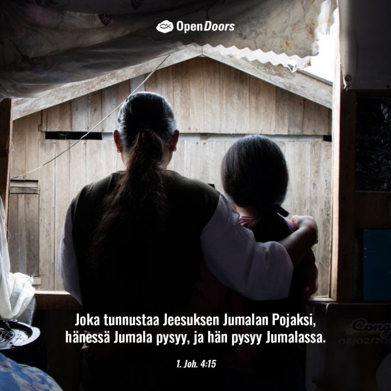 1. Joh. 4:15 Joka tunnustaa Jeesuksen Jumalan Pojaksi, hänessä Jumala pysyy, ja hän pysyy Jumalassa.