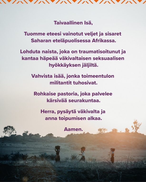 - Rukoile myös muiden vainottujen nuorten kristittyjen puolesta. Rukoile heille varmuutta siitä, etteivät he ole yksin.