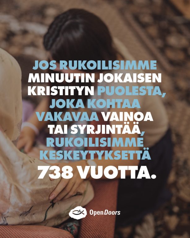 - Rukoile kaikkien, eri puolilla maailmaa vainottujen lasten puolesta, etteivät he kokisi olevansa yksin – etenkään jouluna.