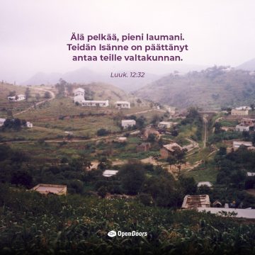 Luuk. 12:32 Älä pelkää, pieni laumani. Teidän Isänne on päättänyt antaa teille valtakunnan.