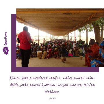 Tuomme, Herra, eteesi kristityt lesket, kuten Gracen*. Hän joutui katsomaan, kun islamistit hakkasivat ja tappoivat hänen miehensä, koska tämä oli pastori. Paranna heidät, anna lohtua ja voimaa. Pidä heidät kiinni Jeesuksessa.