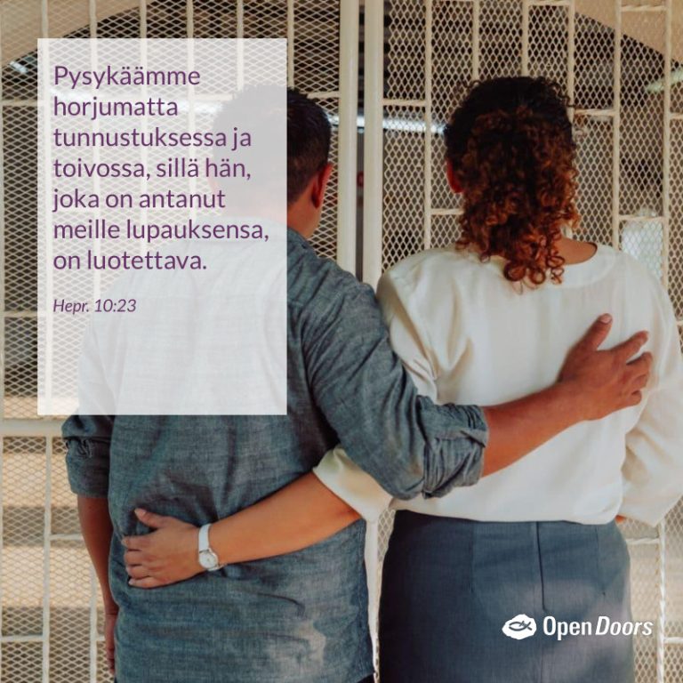 Hepr. 10:23 Pysykäämme horjumatta tunnustuksessa ja toivossa, sillä hän, joka on antanut meille lupauksensa, on luotettava.