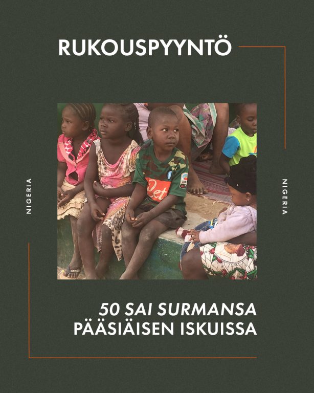 Ääri-islamin leviäminen uhkaa kirkon olemassaoloa Pohjois-Nigeriassa. Viime vuonna 2 983 kristittyä surmattiin. Rukoillaan Jumalalta erityistä armoa jatkuvassa väkivallan uhassa eläville ja vahvuutta pitää kiinni uskosta Jeesukseen painostuksesta huolimatta.